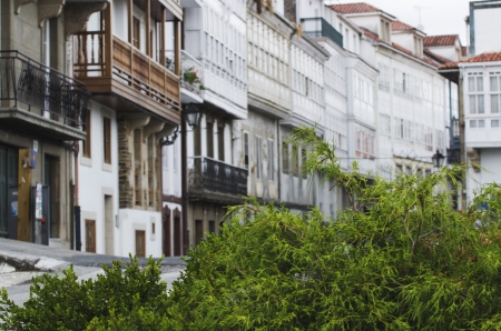 facades with wooden balconies in Betanzos (Galicia )