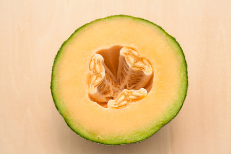 simple food ingredients concept, close-up of rockmelon on cutting board
