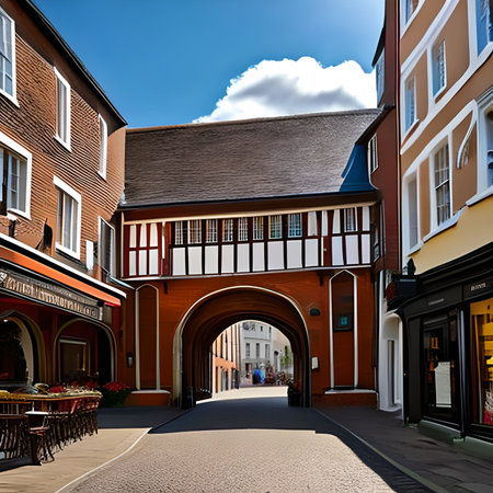 Narrow street architecture with typical english brick buildings and architecture in Winchester, England.