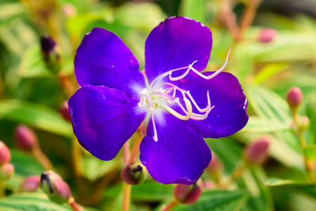 Osbeckia stellata Ham or purple osbeckia, Indian rhododendron tropical shrub plants close up details