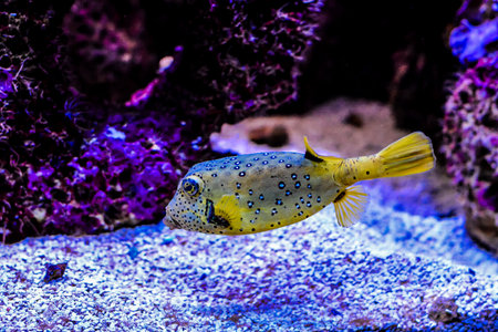 Spot fish is swimming under the sea, it is similar to Trunkfish