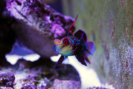 Mandarin fish from Red Sea, bright-coloured coral reef fish, can live in the marine aquariums.