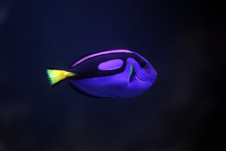 Fish Blue Surgeon or Flag surgeon swims in the aquarium of the Minsk Zoo