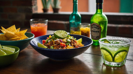 Mexican Food Tradicional Meal - A Modern food on table next to a green margarita glass