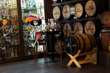 Playa Del Carmen, Mexico - August 04 : A lot Tequila in liquor store August 04 in Playa Del Carmen in Mexico.