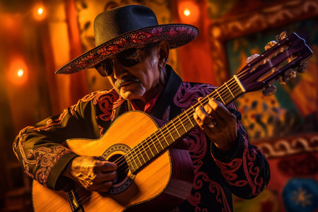 Mexican music. Cinco de Mayo. A Mexican man plays the guitar.