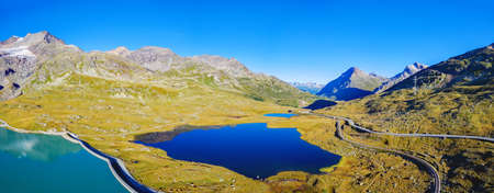 Bernina Pass - Switzerland - Panoramic aerial view of the lakes