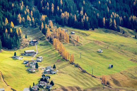 beautiful mountain landscape. view of a small Italian village located on the slope of the mountains. Dolomites, Italy