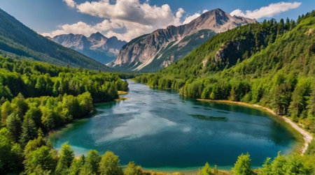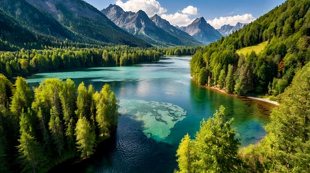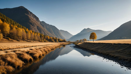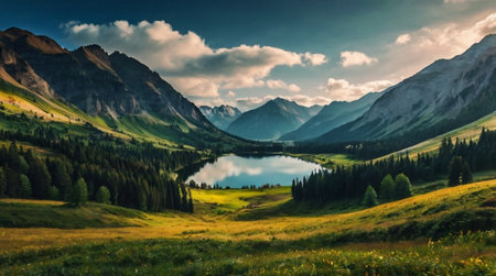 An AI generated illustration of majestic mountains revealing the majestic calm crisp beauty of nature