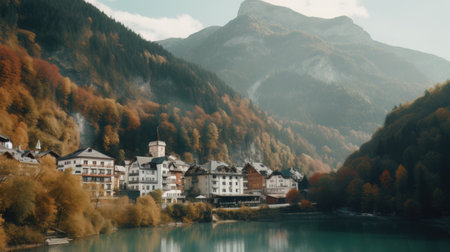 Beautiful old town surrounded by mountains view. Generative AI