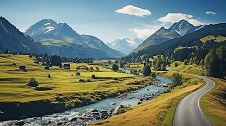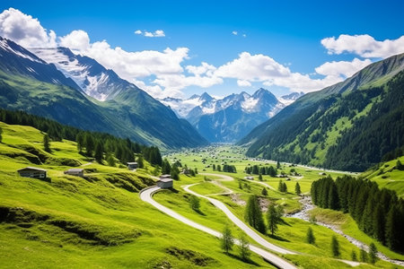 Scenic Alpine Highway with Mountain View