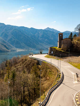 A view of the beautiful nature on the path to the giant bench in Rogno, north of Lake Iseo, located in Bergamo, Northern Italy