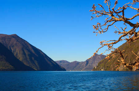 View of lake Lugano or Ceresio lake, Switzerland and Italy