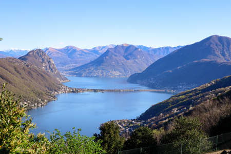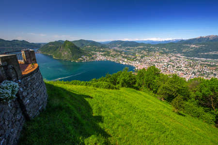 Landscape of Lake Lugano and Lugano city