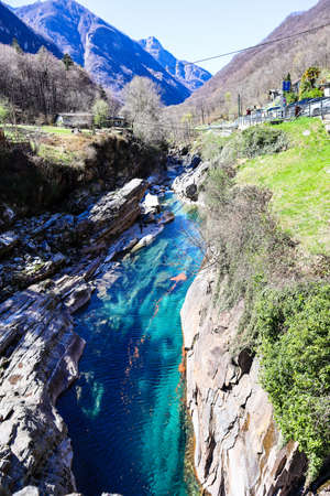 Verzasca River at Lavertezzo in the Verzasca Valley, Ticino in Switzerland
