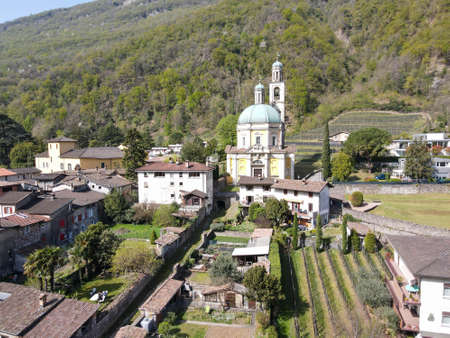 Drone view at Riva san Vitale on the italian part of Switzerland