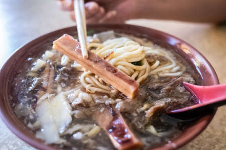 thin noodles with pork intestine, famous and traditional Taiwan snacks