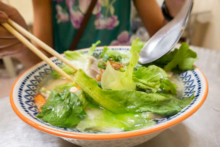Vietnamese food, chicken and rice noodles soup