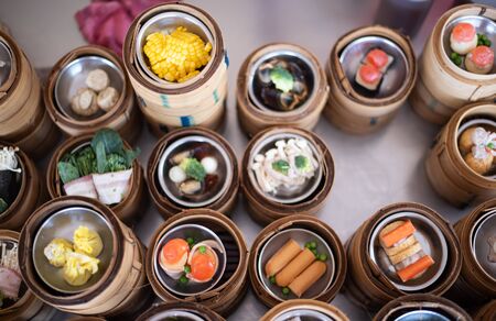 yumcha, dim sum in bamboo steamer, chinese cuisine