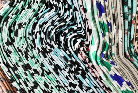 Detailed close up view on samples of cloth and fabrics in different colors found at a fabrics market.