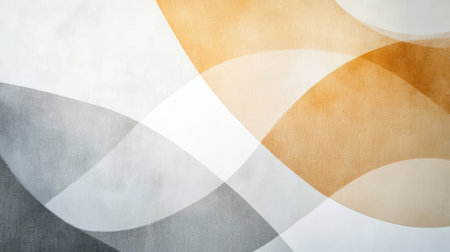 Abstract artwork features soft arcs of muted amber and gray gracefully merging into white sections, resulting in a balanced and serene composition that evokes calmness.