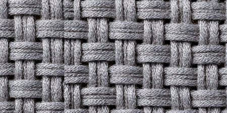 Beige and gray threads intertwining, forming a detailed macro fabric texture