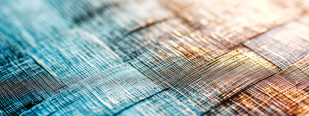 Detailed close-up of a blue woven pattern intricate texture and craftsmanship. ideal for textile design inspiration, showcasing the artistry in weaving details, perfect for catalog, print, and digital media use. Generative AI