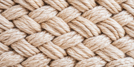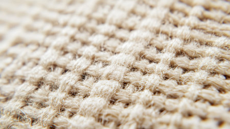 Macro shot of a woven beige natural fiber surface, showing intricate patterns, soft textures, and a minimalist, rustic design.