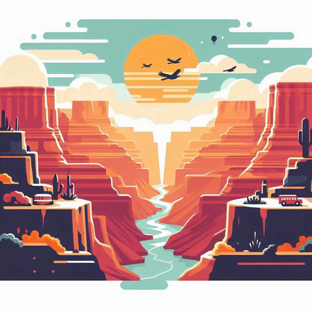 Hiking in Utah, USA. Landscape with river. Vector illustration
