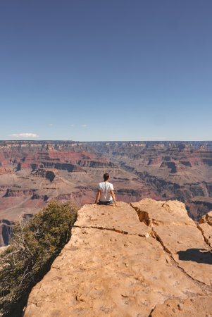 Person Contemplating Majestic Canyon View, Grand Canyon, USA