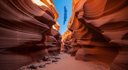 Antelope Canyon in Arizona, USA. Unusual colorful sandstone formations in deserts of Arizona are popular destination for hikers.