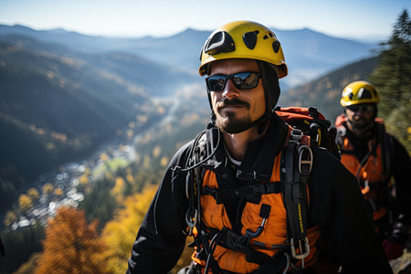High-altitude rescue personnel use rope systems to rescue people in distress. Generated with AI
