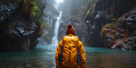 Anadventuroustravelerimmersingthemselvesinacaptivatingandremotedestinationembracingexploration. Concept Outdoor Adventure, Remote Destinations, Exploration, Travel Photography, Immersive Journeys