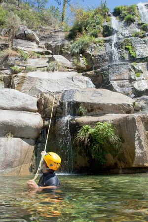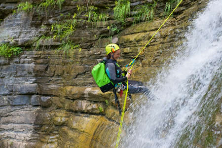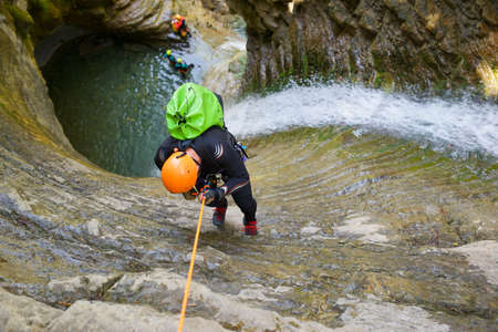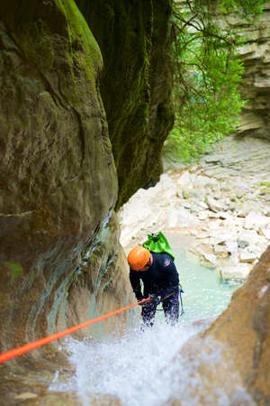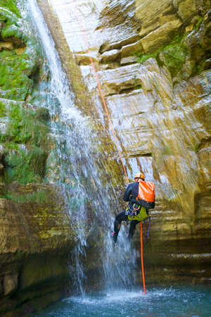 waterfall descent by a professional canyoning istructor.