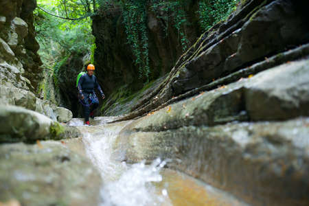 Canyoning in Lucas Canyon, Tena Valley, Pyrenees, Huesca Province, Aragon, Spain.