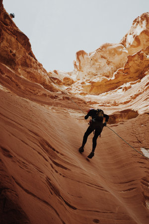 A man trying to climb the cliffs of the canyon