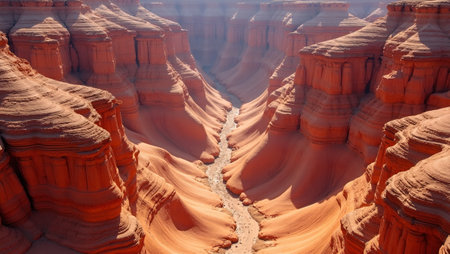 AI Generated. Desert Canyon System A deep narrow canyon system carved out by a