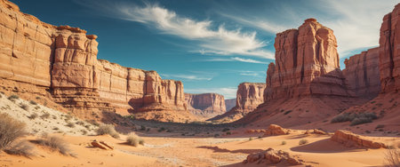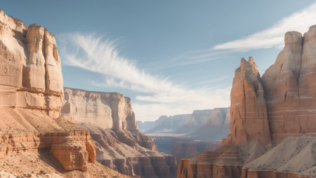 AI Generated. Majestic Canyon Landscape with Dramatic Rock Formations and a Bright Sky