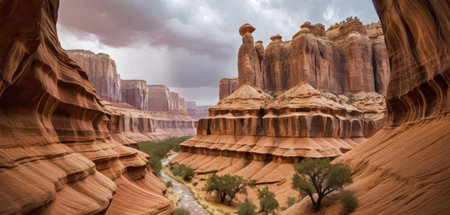 AI Generated. Breathtaking canyon landscape with towering red rock formations