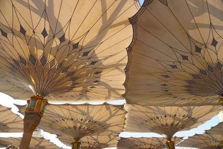 Big umbrella structure of al masjid al nabawi from the holy land and beautiful building structure madinah saudi arabia