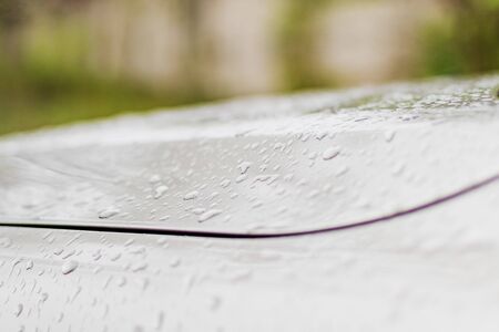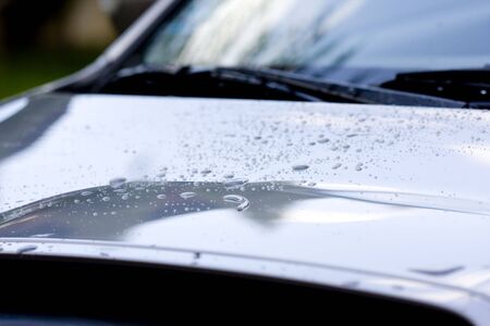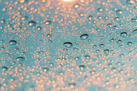 Raindrops on Car Windshield Capturing a Tranquil Moment in Nature. Concept of Calmness, Reflection, Weather, and Serene Beauty.. Copy space.