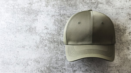 A stylish green baseball cap placed on a textured gray background. The cap showcases a modern design suitable for various outfits and occasions. Perfect for fashion photography.