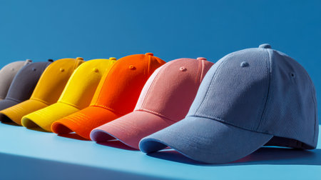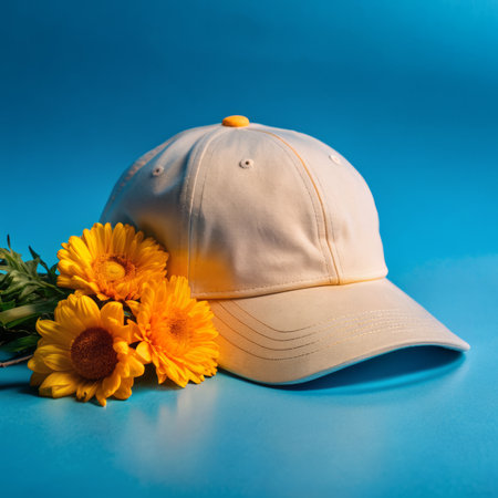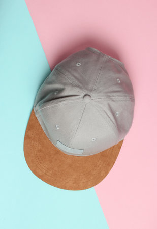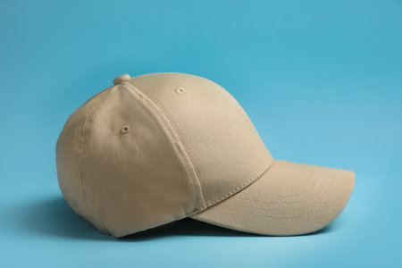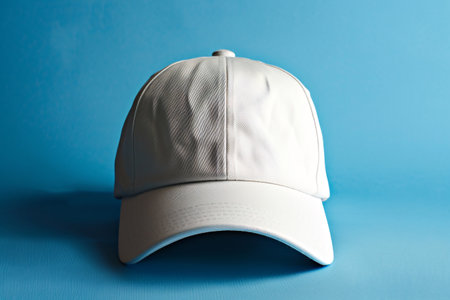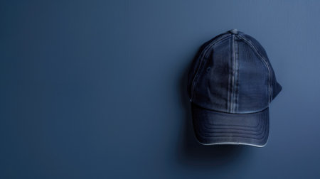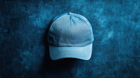 A stylish blue cap sits on a textured blue background, perfect for showcasing casual accessories and fashion trends in photography.