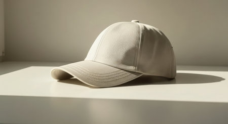A white cap lies on a flat surface as the sun sets casting warm light and shadows across the scene creating a peaceful atmosphere.