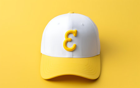 A stylish white baseball cap is prominently displayed against a bright yellow background, enhancing its trendy appeal for modern fashion enthusiasts.
