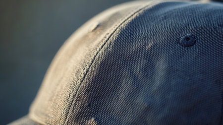 Close-up of a textured baseball cap captured in soft natural light outdoors