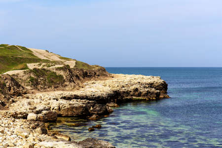 Nice view of the cliff and the sea / ocean. Anapa and the Black Sea, the blue-green color of nature.