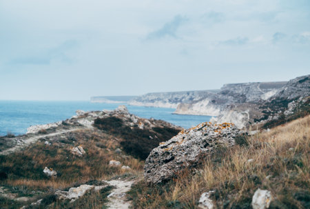 Rocky seashore. Sea nature landscape. View of the sea from the mount. Crimea