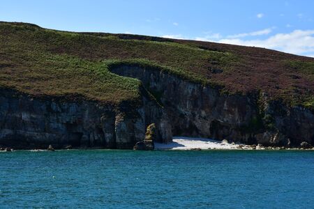 Landscape of the Brittany coast in the Cape Frehel region with its beaches, rocks and cliffs in summer.