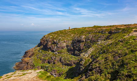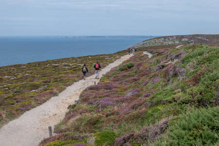 Scenic view of Cape Frehel, one of the most popular tourist destinations in Brittany, France. Widely known tourist attraction along famous GR34 tracking path